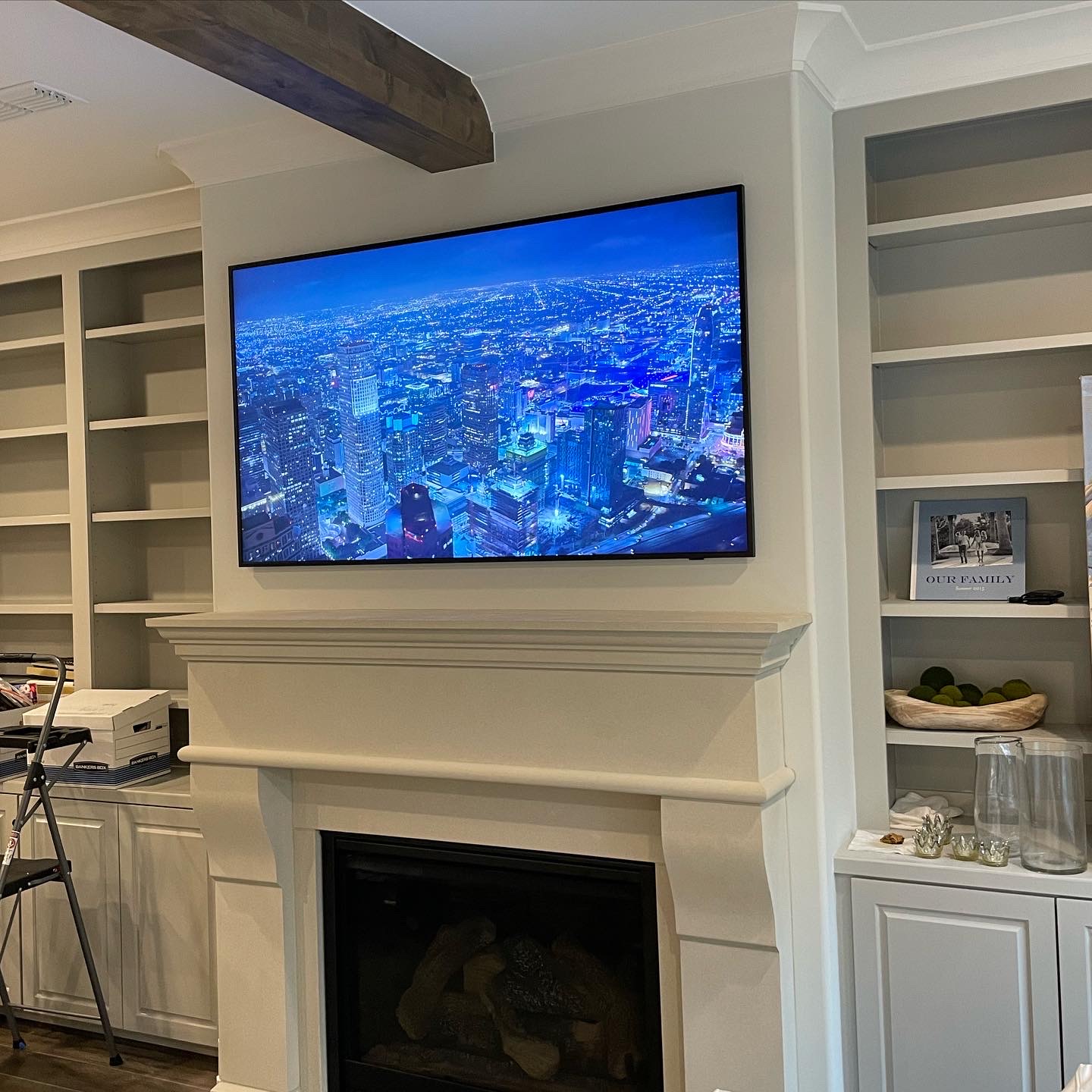 A typical TV installation in the $300–$400 range includes professional wall mounting, stud detection for safety, bracket installation, wire concealment, and connection of streaming devices, gaming systems, or soundbars. Every detail is handled carefully—from selecting the correct mounting height to ensuring cables are neatly organized and hidden whenever possible. The result is a sleek, modern setup that enhances both the room’s appearance and viewing experience.