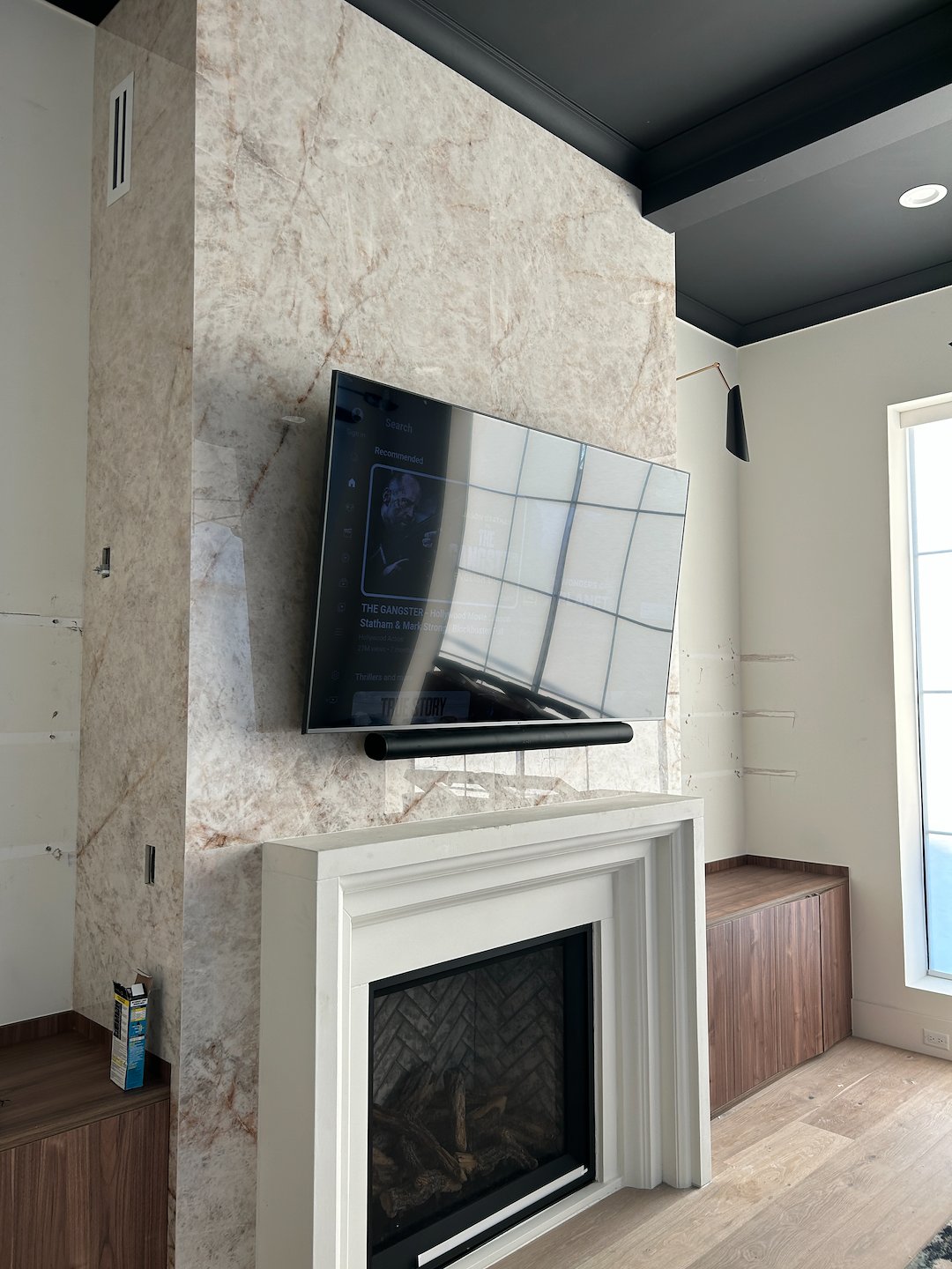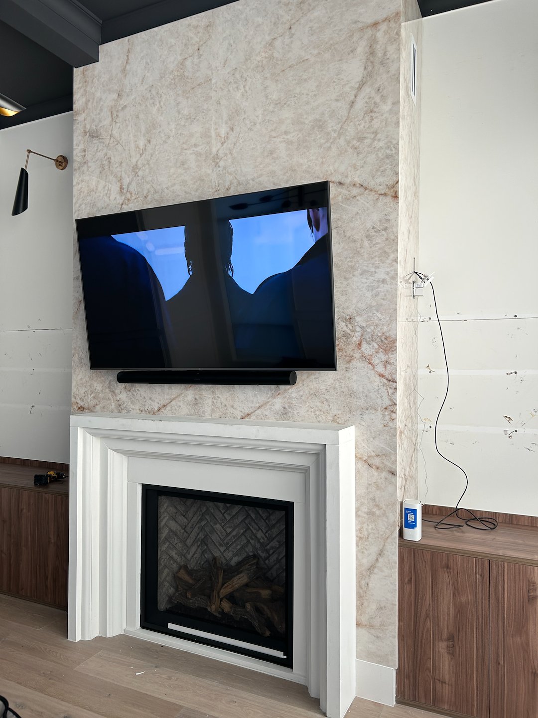 Mounting above a fireplace is common in Houston homes. We ensure: